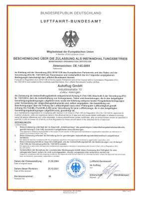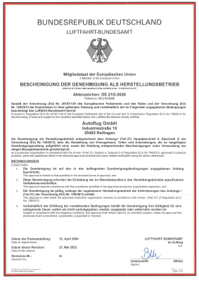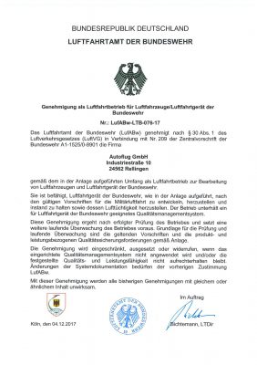 AUTOFLUG ist anerkannt durch das Luftfahrtamt der Bundeswehr (LufABw) als