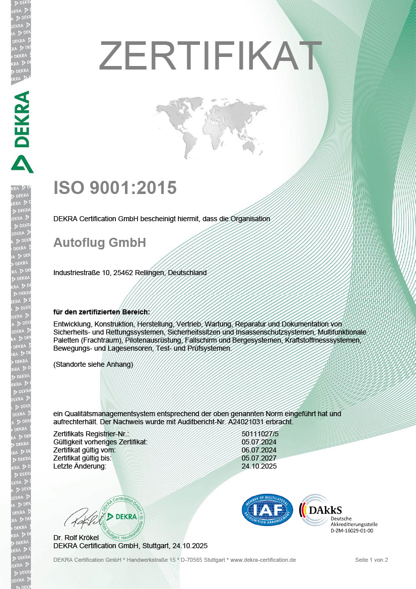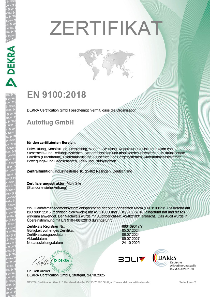 Als zivil und militärisch zugelassener Luftfahrtbetrieb verfügt Autoflug über ein Qualitätsmanagement-System, das allen Anforderungen gerecht wird. Im Produktionsprozess wird so von der Beschaffung der Bauteile bis zur Auslieferung der Ware ein durchgängig hohes Qualitätsniveau sichergestellt. Genauso ist für Aufträge des öffentlichen Auftraggebers die Einbindung der kundeneigenen Prüfdienste Standard.