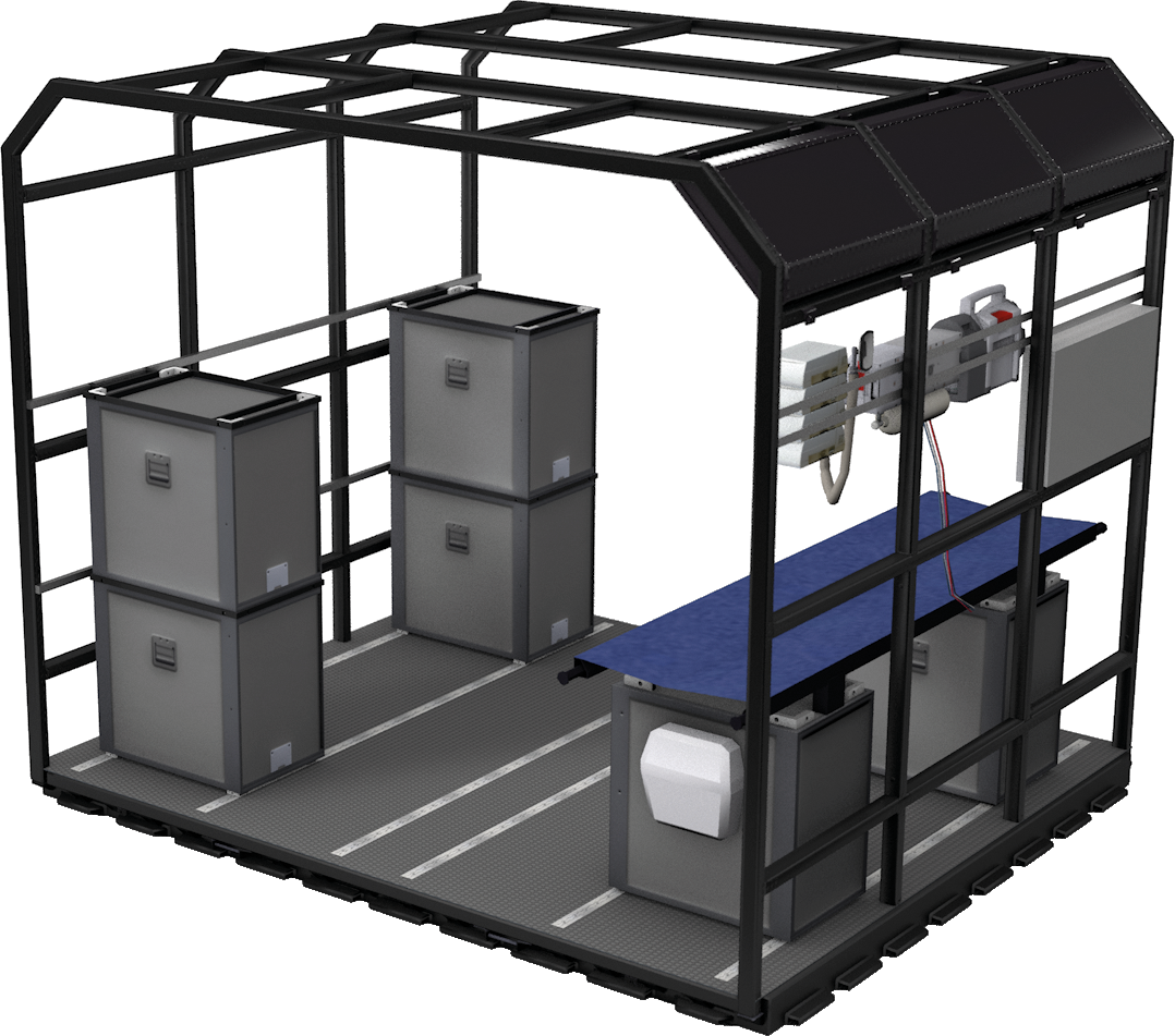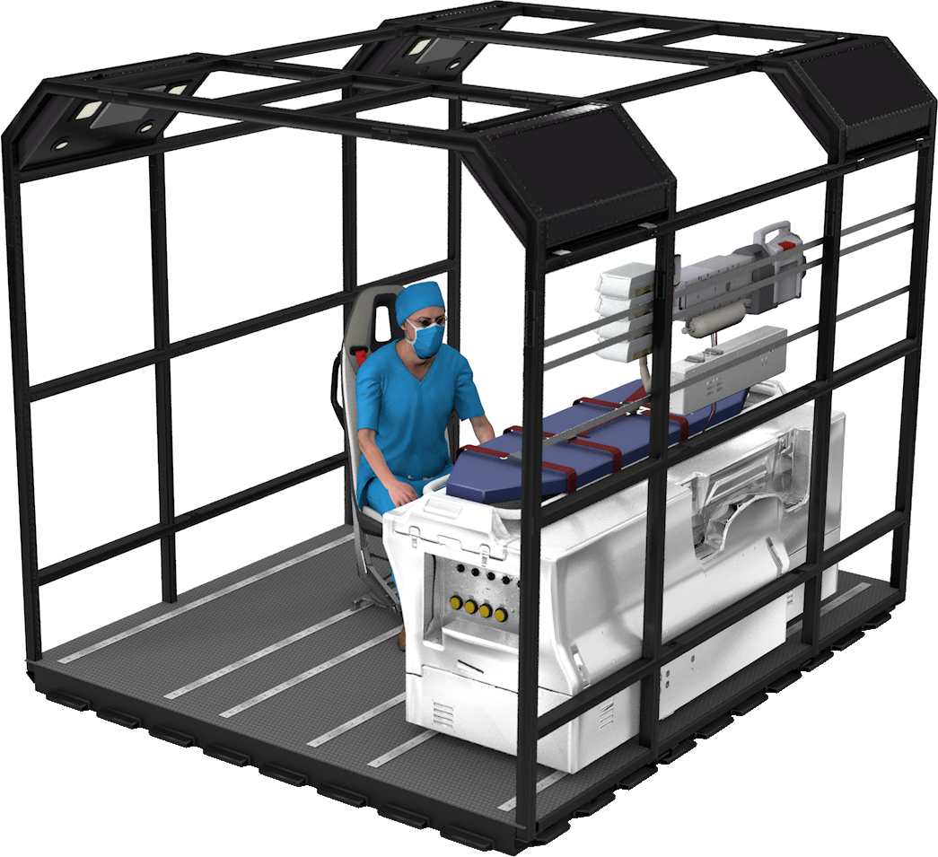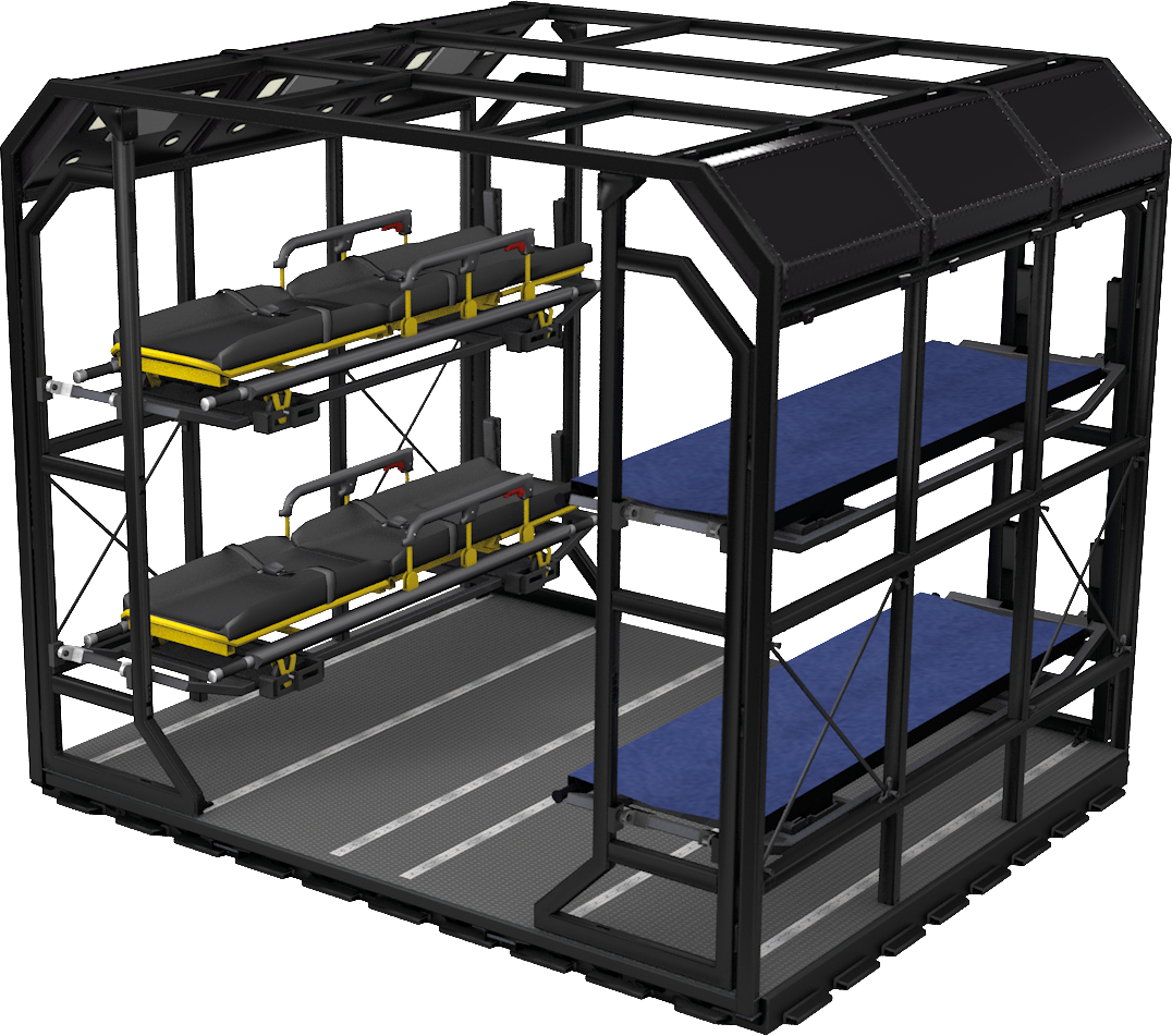 Medical Pallets ermöglichen den raschen Umbau eines Flugzeugs in ein fliegendes Krankenhaus mit komplettem medizinischen Leistungsvermögen. Das flexible Installationssystem verfügt über eine Intensivstation, Tragen, Kästen, Sitze und Tische. Es kann mit Sitzen für das medizinische Personal kombiniert werden.