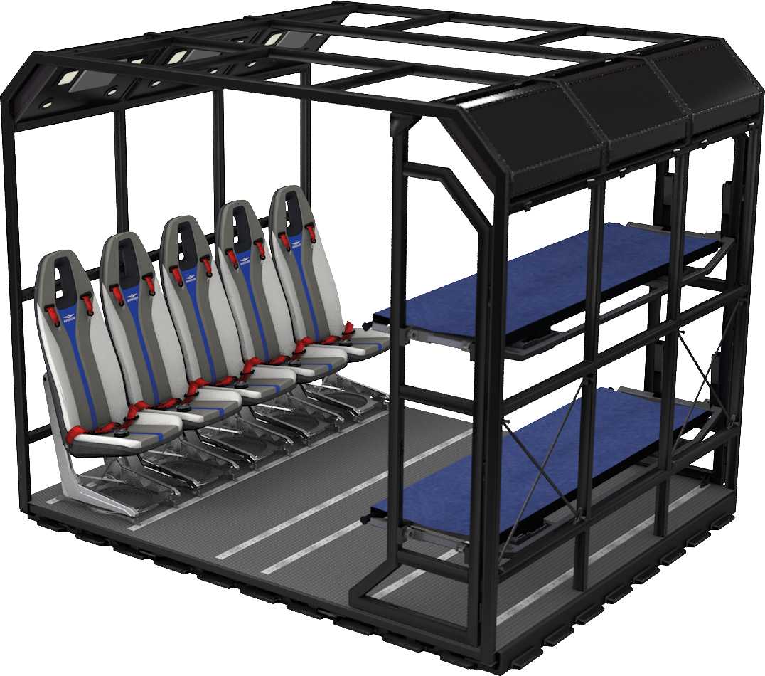 - Sitzpaletten, Medizinische Paletten, andere Geräte und Fracht können flexibel kombiniert werden