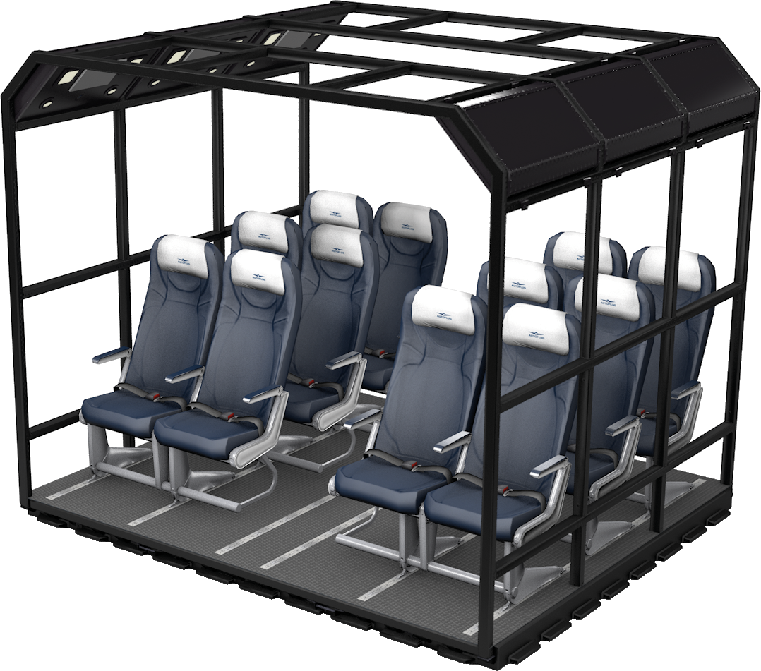 - Sitzpaletten und medizinische Paletten können außerhalb des Flugzeugs vorbereitet werden und werden innerhalb kurzer Zeit im Flugzeug installiert