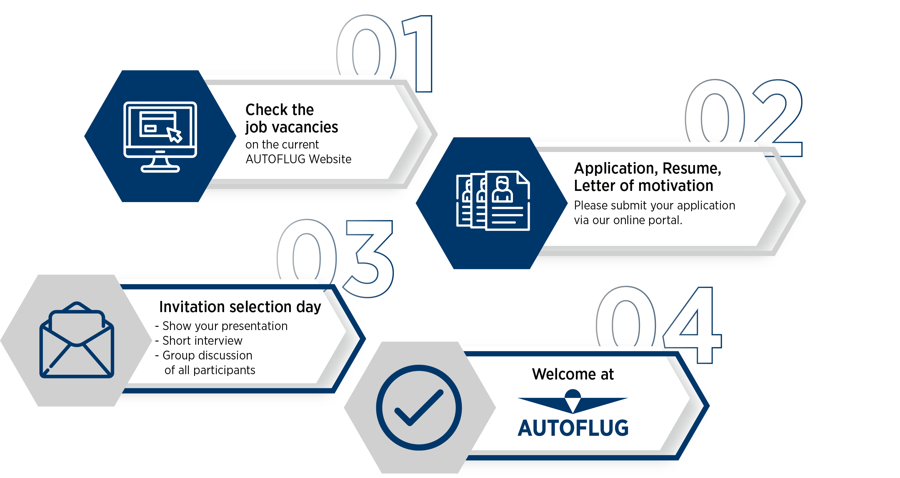 We welcome your interest in our company. A good application is the first step on your way to joining AUTOFLUG. To help you complete this step successfully, we will be pleased to provide you with a few tips.
